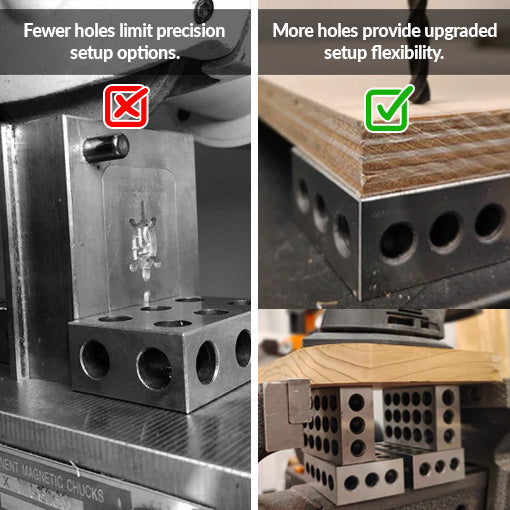 ✅ Durable and Versatile: Made from hardened steel, these blocks are built to withstand heavy use without warping or wearing down. The threaded cross-drilled holes allow secure bolting, drilling, or clamping for a variety of applications. This versatility makes them ideal for both professional and DIY projects.