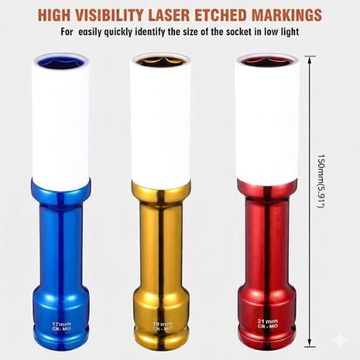 "I bought this specifically for my custom powder-coated wheels. Standard sockets were leaving 'halos' around my lug holes, but this 6-inch deep reach means I don't have to worry about my impact wrench hitting the fender, and the nylon sleeve is thick enough to protect but thin enough to fit. It's a solution that finally gives me peace of mind." -Garrett M.