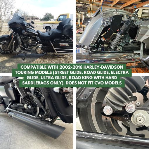 Compatibility: 2002-2016 H*rle*-D*vidso* Touring models (Street Glide, Road Glide, Electra Glide, Ultra Glide, Road King with hard saddlebags only). Does not fit CVO models.