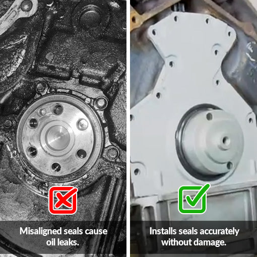 ✅Precision Alignment for Leak-Free Seals: Mechanics often damage new crank seals during installation due to poor alignment or uneven pressure, resulting in oil leaks and rework. The Diesel Front & Rear Main Crankshaft Seal Driver Kit eliminates these risks by ensuring precise seal seating, protecting both your engine and your time.