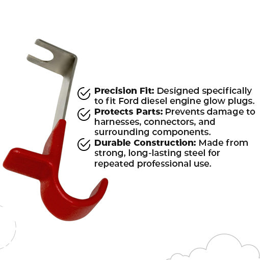 A: This Glow Plug Harness Puller Ford stands out because of its precise fit, durable stainless steel construction, and ergonomic design. Unlike generic alternatives, it features a textured grip and thumb tab that give technicians maximum control, preventing harness or connector damage. Its vehicle-specific design for Ford 6.0L and compatible diesel engines ensures safe, efficient, and reliable removal every time.