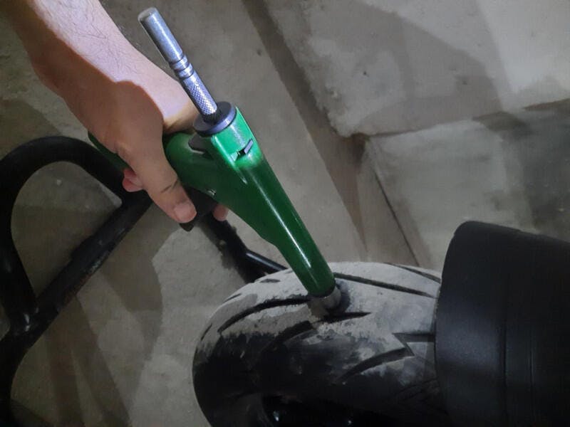 - Insert the nozzle into the tire using the probe tool. Unscrew the probe tool to leave the nozzle in the tire.